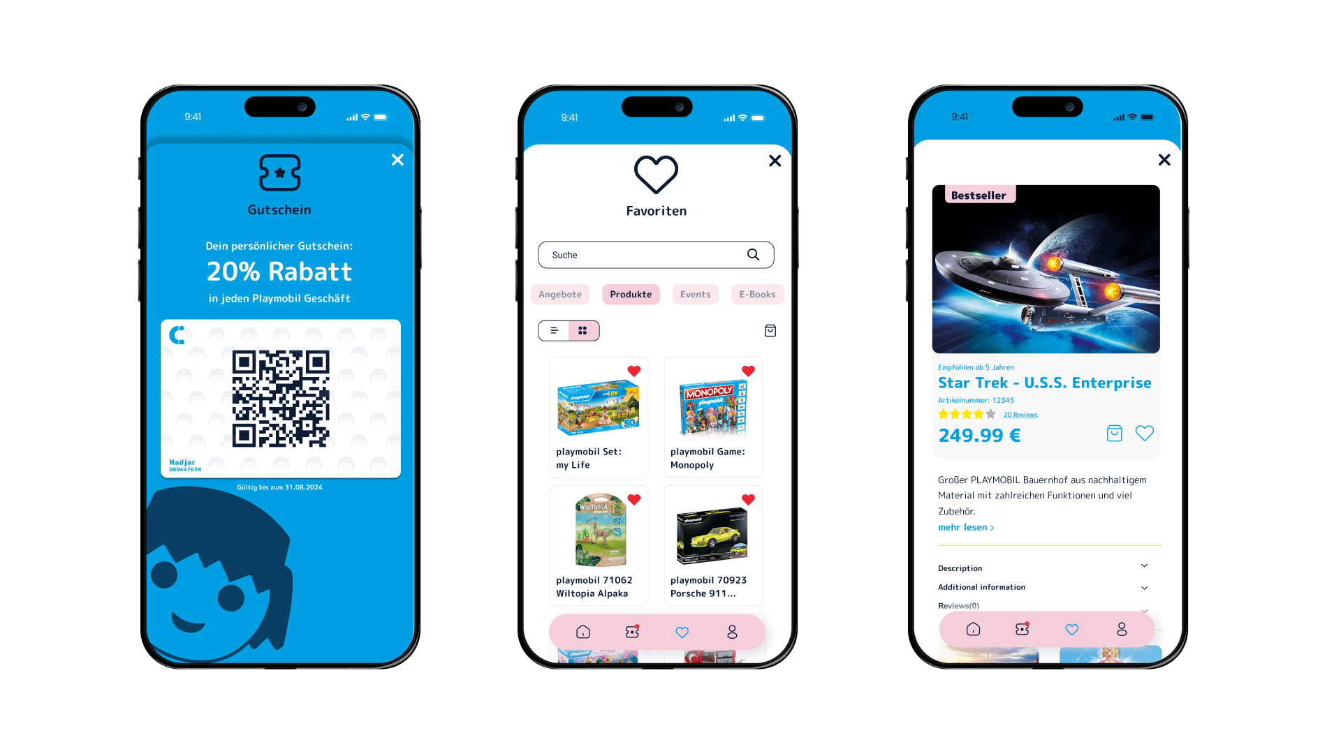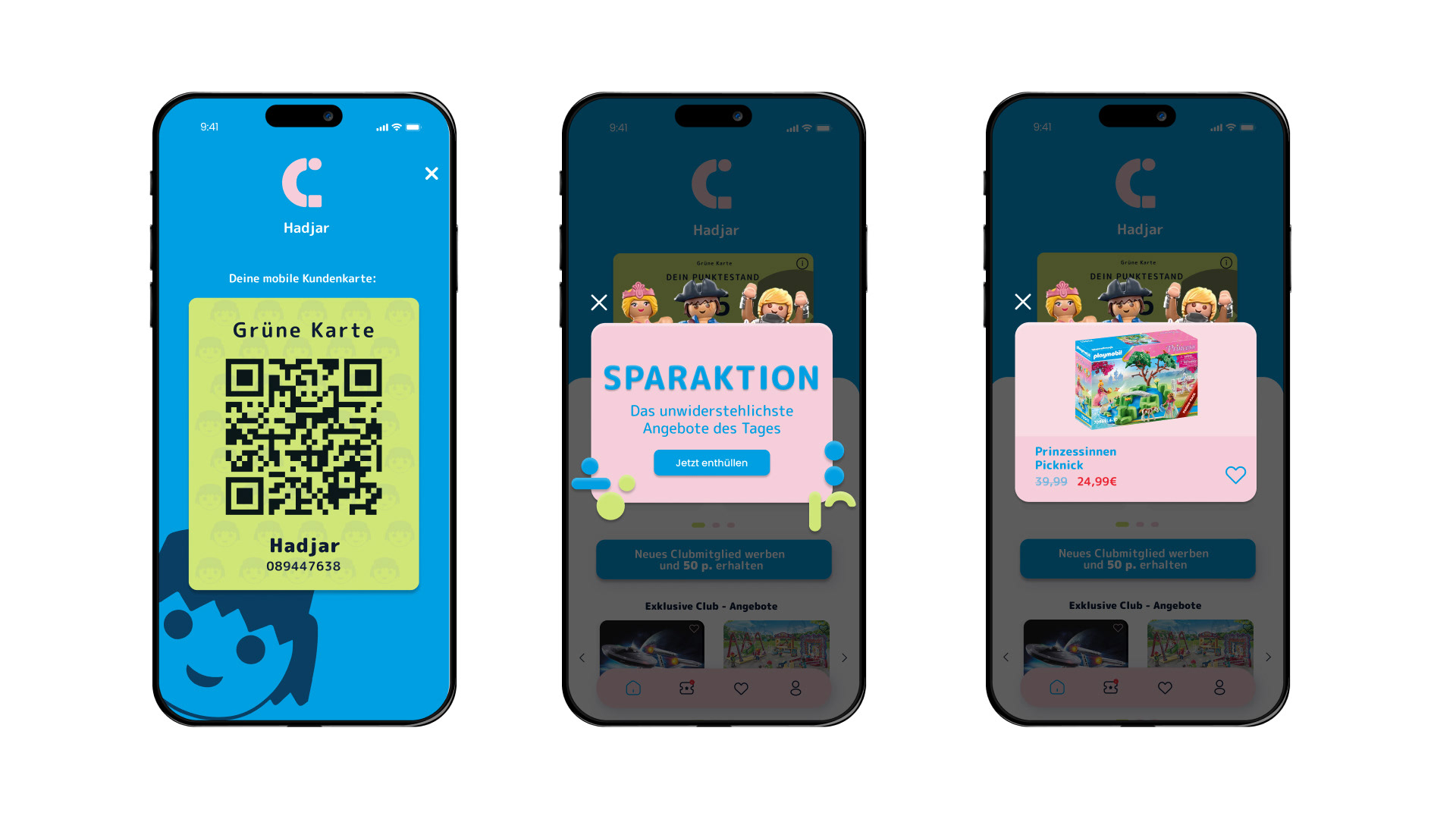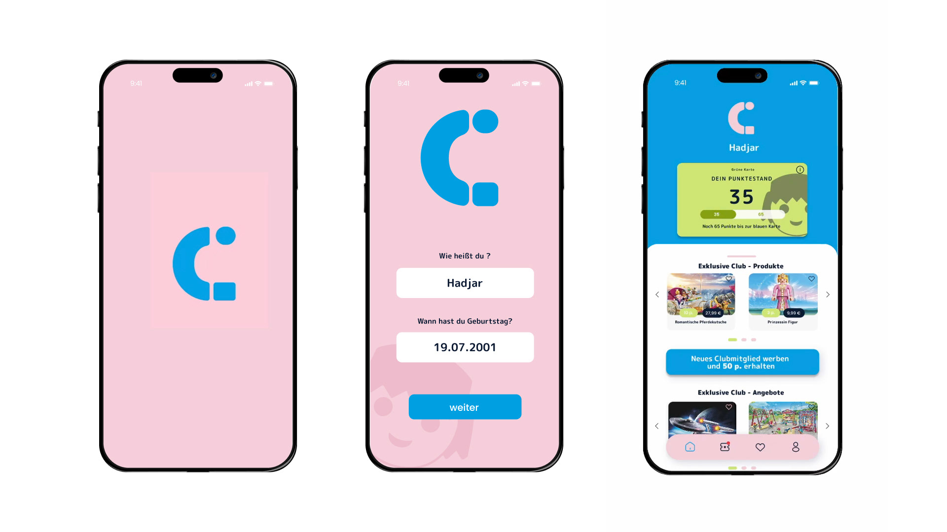 Im Rahmen des Kurses New Media im 6. Semester meines Studiums entstand das Projekt Playmobil Club. Konzipiert wurde eine interaktive App samt eigenständigem Corporate Design, die eine neuartige Mitgliedschaft für Kinder und ihre Eltern ermöglicht. Mit spielerischen Funktionen, exklusiven Angeboten und einer klaren visuellen Sprache fördert der Club die Fantasie, stärkt die Kundenbindung und revolutioniert die Marke Playmobil.